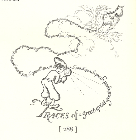 William Maxwell Reed‘s 1929 book The Earth for Sam is one of the first American children’s books to engage with evolution. ( I have found six other books from the same time period) In an example endemic of all these children’s evolution books Reed claims; “We saw life become a cell, then a group of cells. In turn there have appeared before us the fish, the amphibian, the reptile, and the mammal.” He goes on to address human decent directly; “Finally from among the mammals there appeared the primates and from among the primates the European white primates who founded the British Empire and the United States of America.” While the textbooks were becoming conservative, often not even mentioning the word evolution, children’s books emerged boldly asserting an ancient earth, and the decent of man.