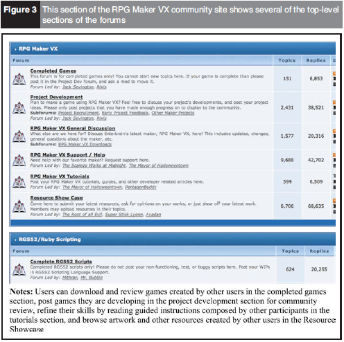 Purpose – Online community sites devoted to RPG Maker, an inexpensive software for creating role-playing video games, have emerged as spaces where young people are developing valuable competencies with digital media. This study seeks to examine the largest of these communities.