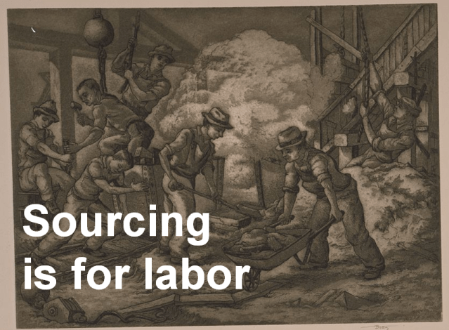 The problem with the term sourcing is its association with labor. Wikipedia’s definition of crowdsourcing helps further clarify this relationship, “Crowdsourcing is a process that involves outsourcing tasks to a distributed group of people.” The keyword in that definition is outsourcing. Crowdsourcing is a concept that was invented and defined in the business world and it is important that we recast it and think through what changes when we bring it into cultural heritage. Cultural heritage institutions do not care about profit or revenue, they care about making the best use of their limited resources to act as stewards  and storehouses of culture.