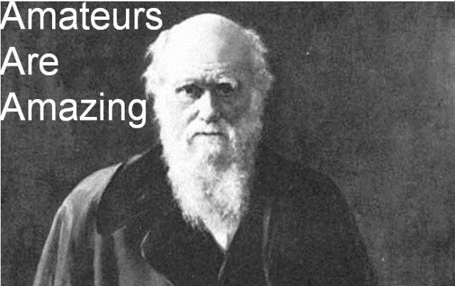 Amateurs have a long and vibrant history as contributors to the public good. Coming to English from French, the term Amateur, means a “lover of.” The primarily negative connotations we place on the term are a relatively recent development. In other eras, the term Amateur simply meant that someone was not a professional, that is, they were not paid for these particular labors of love. Charles Darwin, Gregor Mendal, and many others who made significant contributions to the sciences did so as Amateurs. As a continuation of this line of thinking, the various Zooniverse projects see the amateurs who participate as peers, in many cases listing them as co-authors of academic papers published as a result of their work. I suggest that we think of crowdsourcing not as extracting labor from a crowd, but of a way for us to invite the participation of amateurs (in the non-derogatory sense of the word) in the creation, development and further refinement of public goods.