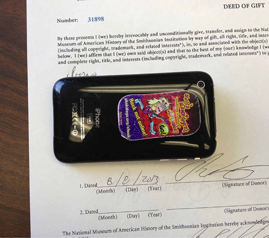 As a point of comparison, there is at least one other iPhone in the collections of the Smithsonian Institution. Writing about the acquisition of an iPhone app, Seb Chan from the Cooper Hewitt Design Museum wrote about the iPhone they have in the collection and the inherent limitations in thinking about how to make use of that device.