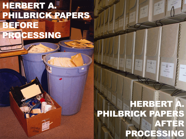 In the analog world, it’s often difficult to infer what that order is. For instance, the Herbert A Philbrick papers came to the Library of Congress in a mixture of boxes and trash cans.